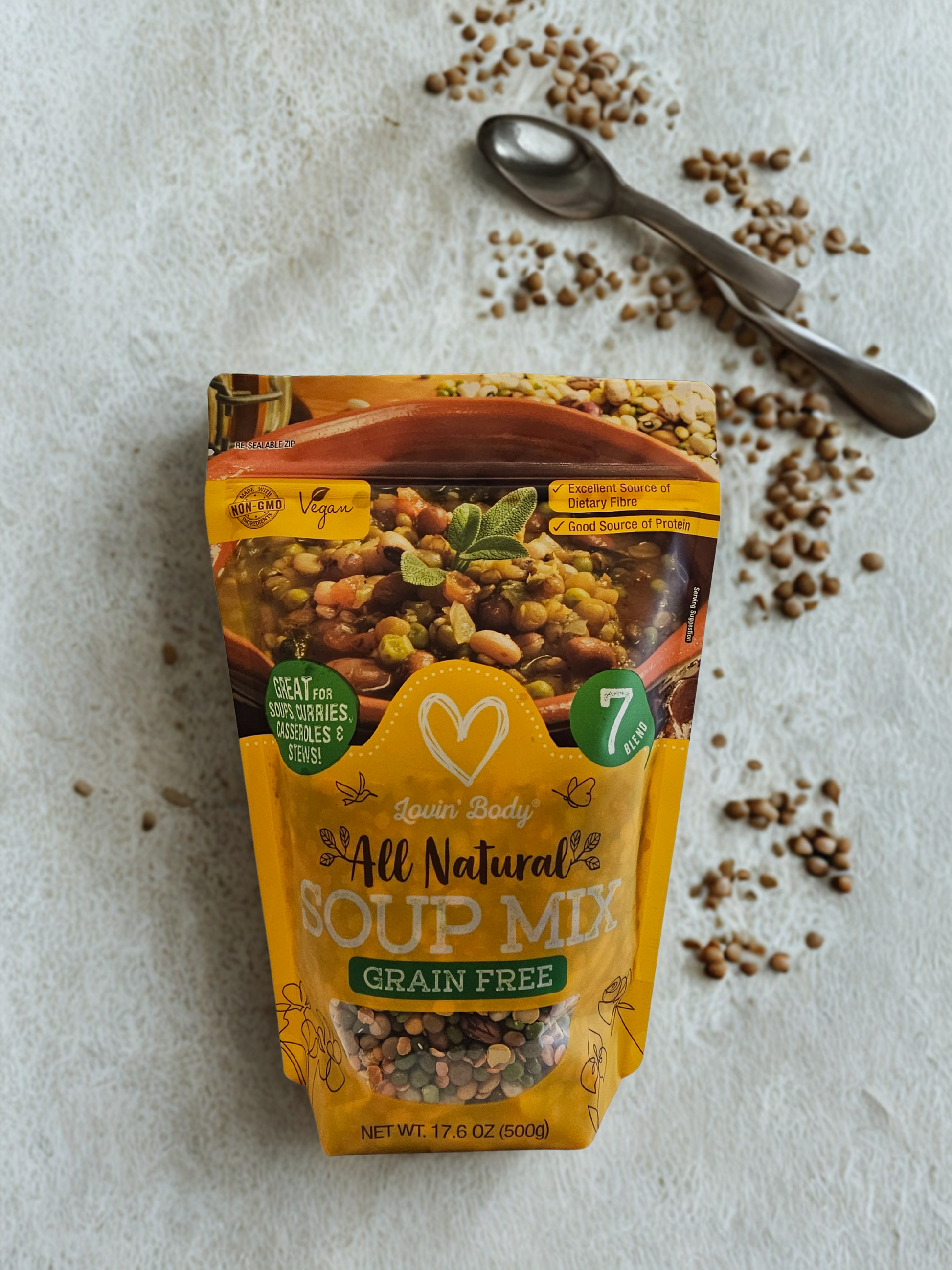 Lovin' Body All Natural Soup Mix 7 Blend Grain Free is made from a quality assortment of beans, split peas and lentils. This hearty and flavoursome blend is nutritious, grain free and 100% natural.